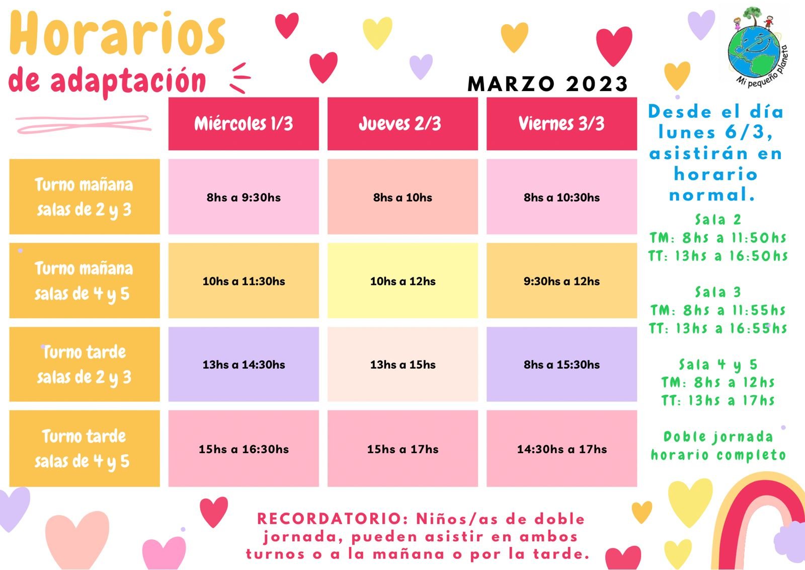 HORARIOS DE ADAPTACIÓN